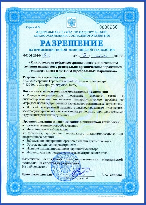 Патенты и разрешения ФЕДЕРАЛЬНОЙ СЕТИ КЛИНИК «РЕАЦЕНТР»